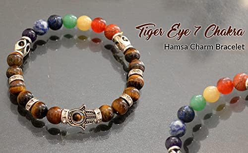 Pujahome Tiger Eye Bracelet, 7 Chakra Bracelet, Combination Bracelet, Crystal Bracelet 8 mm Stone Bracelet with Hamsa Charm Bracelet (Color : Multi)