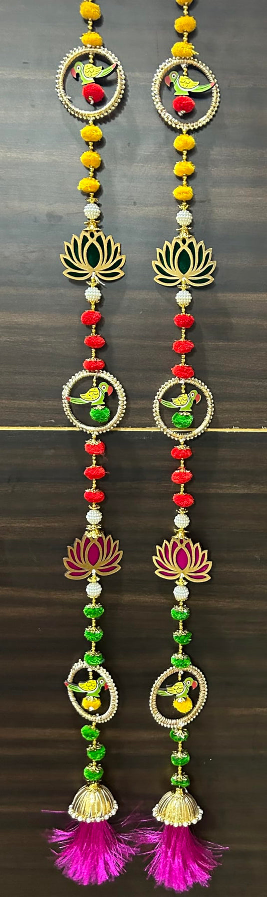 Pujahome Traditional Latkan Parrot Moti Door latkan Toran Multi Mix Colour for Home D?cor, Bandhanwal for Home D?cor Set of 2