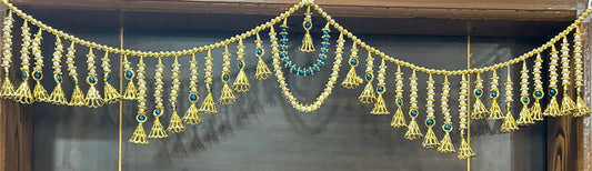 Pujahome Traditional Art Handmade Leaf Design Golden Colour Bandarwal Bandhawar Toran Door & Wall Hanging for Diwali Weeding Inauguration & Home Decoration