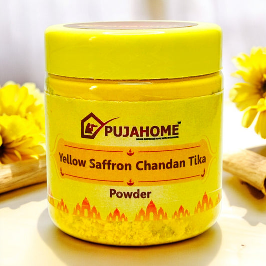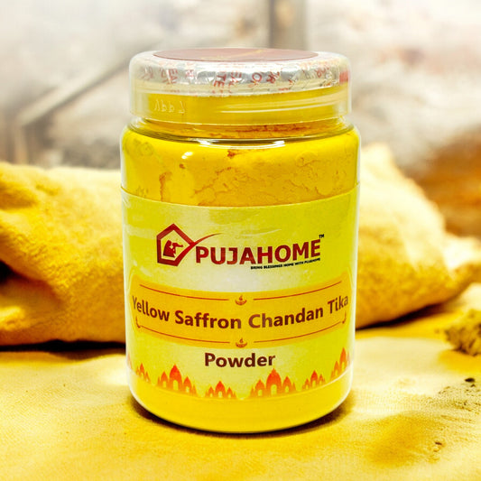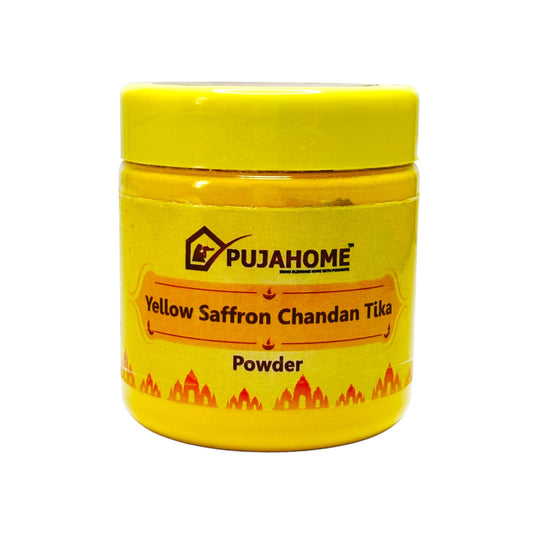Pujahome Premium Yellow Saffron Chandan Tika Powder 100 Gram Box