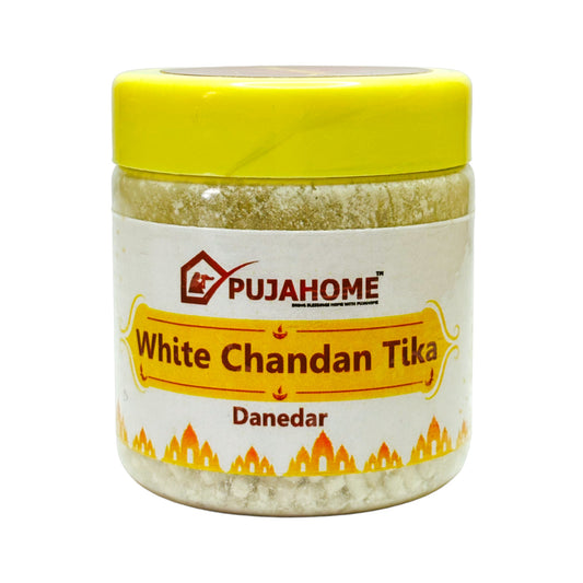 Pujahome Premium White Chandan Tika Danedar 100 Gram Box