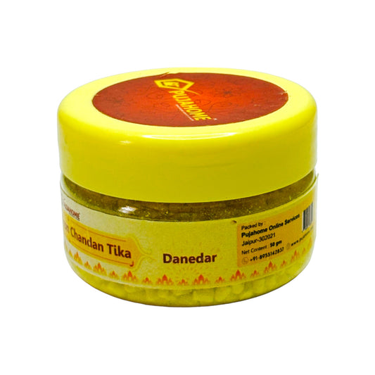 Pujahome Premium Yellow Saffron Chandan Tika Danedar 50 Gram Box