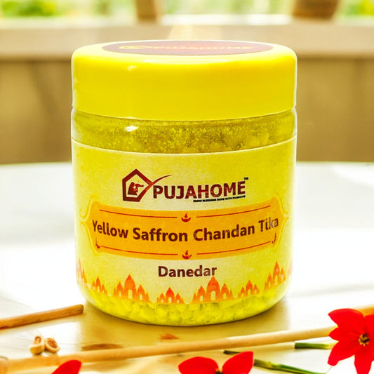 Pujahome Premium Yellow Saffron Chandan Tika Danedar 200 Gram Box
