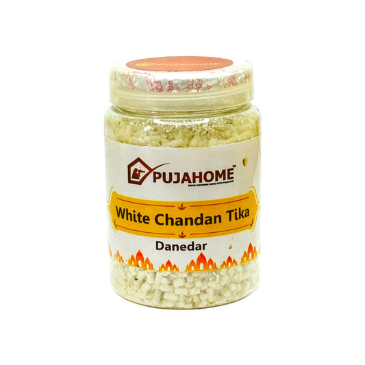 Pujahome Premium White Chandan Tika Danedar 200 Gram Box
