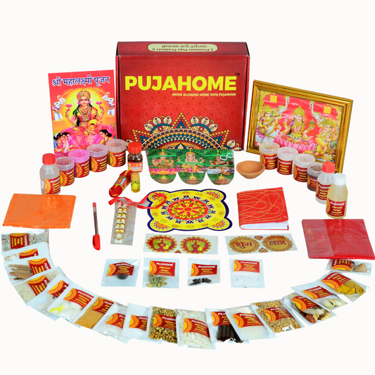 Pujahome Diwali Puja Samagri Kit for Mahalakshmi Pujan (57+ Items) with Detailed Puja Vidhi