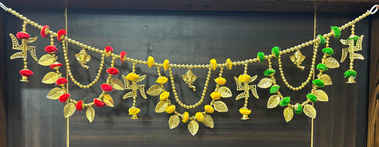 Pujahome Traditional Art Handmade Leaf Design Golden Colour Bandarwal Bandhawar Toran Door & Wall Hanging for Diwali Weeding Inauguration & Home Decoration