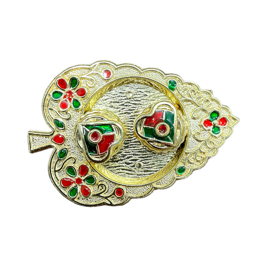 Pujahome Golden Leraf Tika Platter Chawal/Rice Holder,