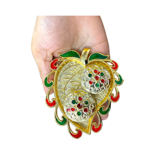 Pujahome Golden Big Leraf Tika Platter Chawal/Rice Holder