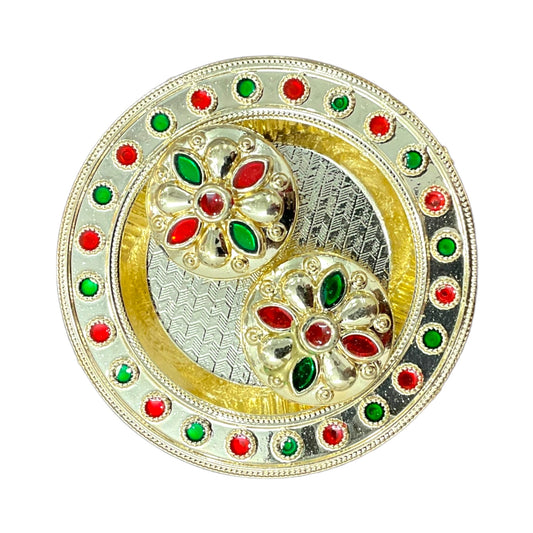 Pujahome Round Thali For Pooja Haldi Kumkum Holder/Plate