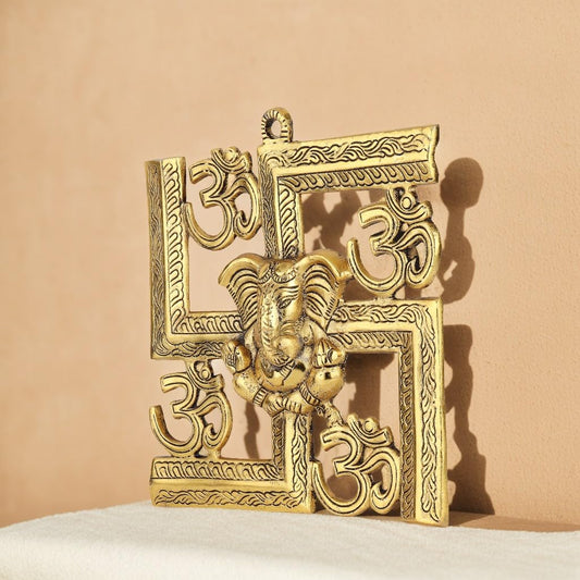 Pujahome Metal Wall Hanging Sathiya with Ganesh God Idol 8X8 Inch