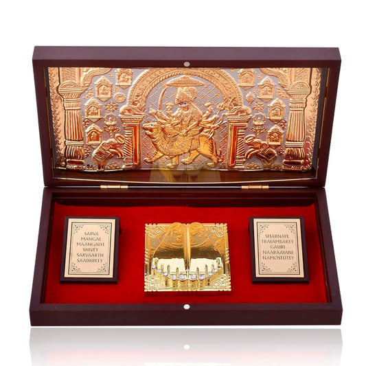 Pujahome Gold Plated Jai Mata Di Charan Paduka Box With Footprint