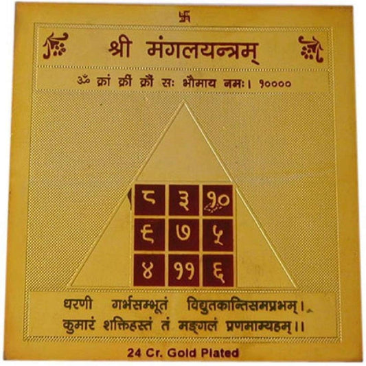 Pujahome Original Shri Mangal Yantra, 3.25x3.25 Inch, Gold Polished ? Vedic Astrology Aid for Positive Energy and Good Luck