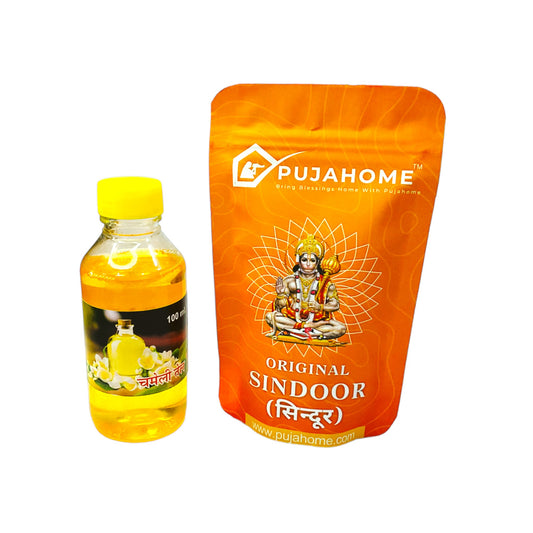 पूजा के लिए पूजाहोम हनुमानजी चोला मूल सिंदूर और चमेली/चमेली का तेल (100 मिली तेल + 100 ग्राम सिंदूर)