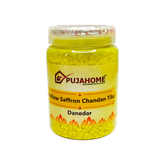 पूजाहोम प्रीमियम पीला केसर चंदन टीका दानेदार 200 ग्राम बॉक्स
