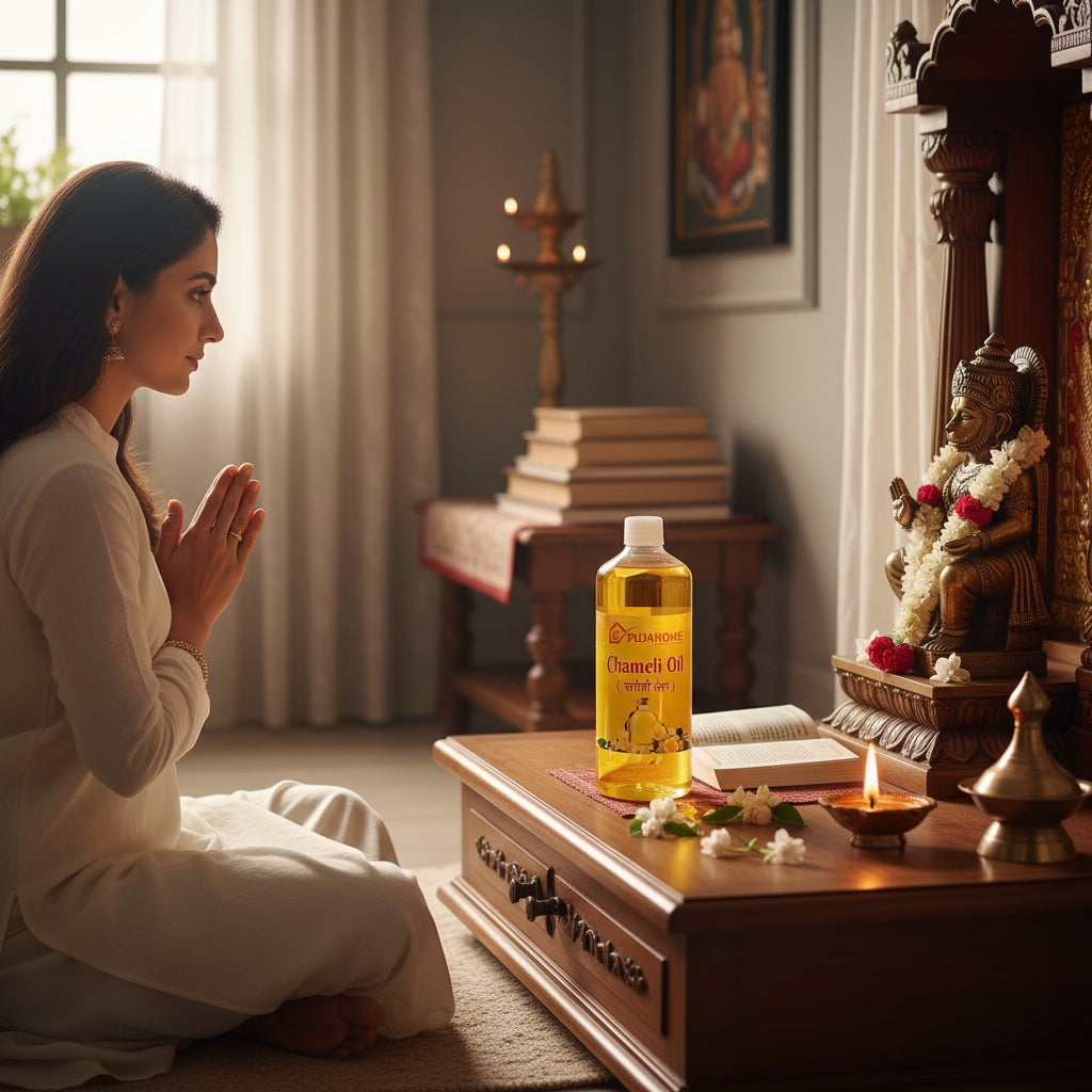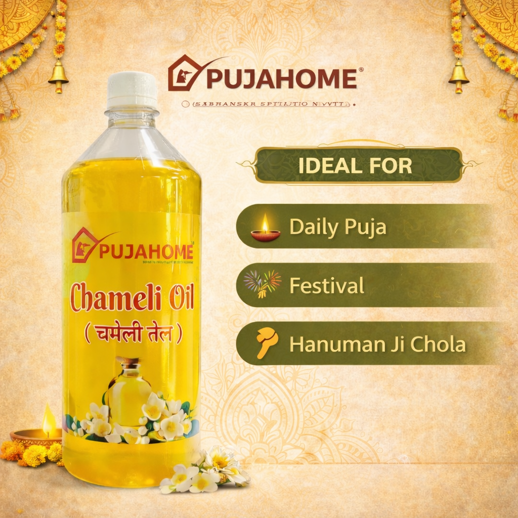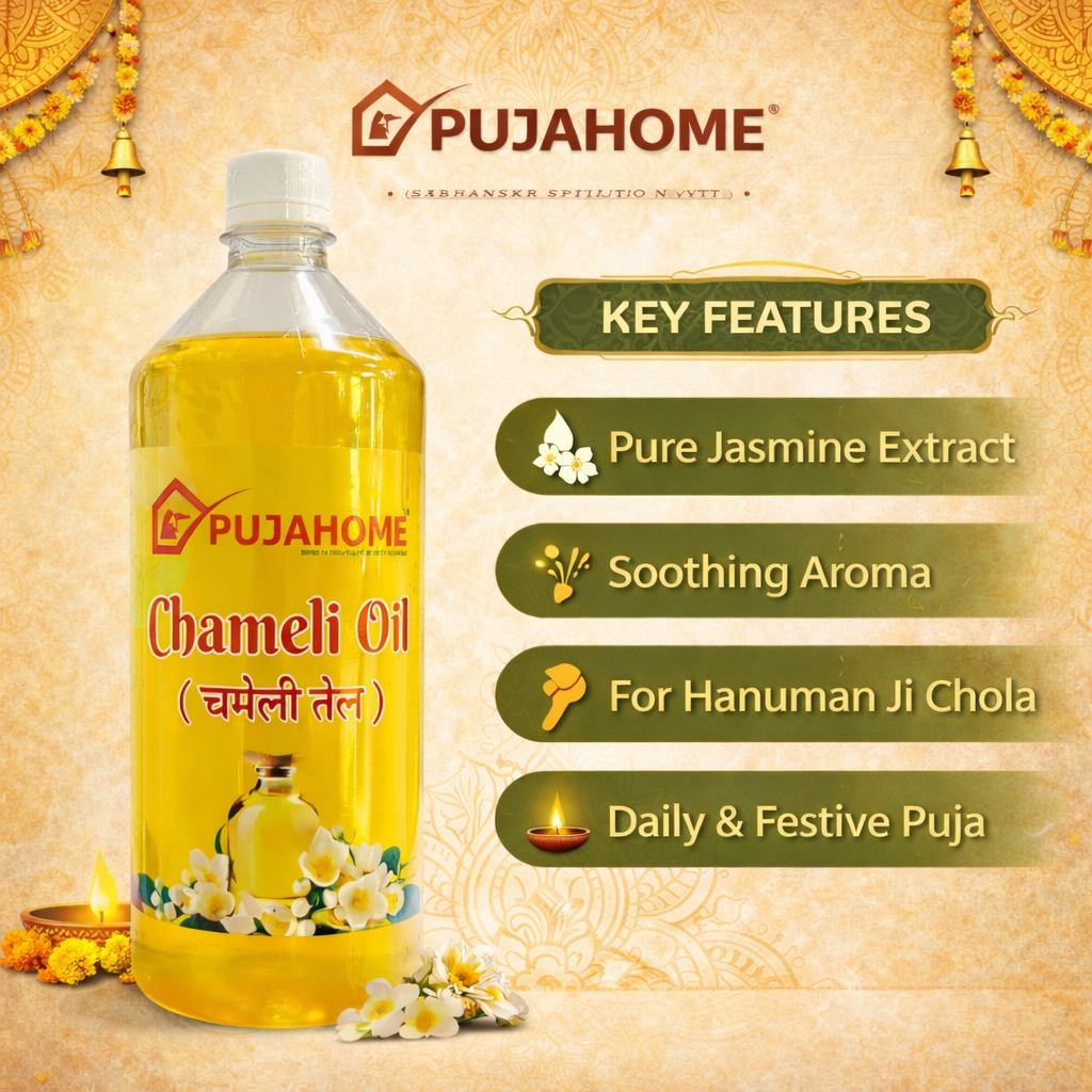 हनुमान पूजा और अन्य पवित्र अनुष्ठानों के लिए विशेष रूप से तैयार किए गए पूजहोम चमेली तेल के दिव्य सार का अनुभव करें।