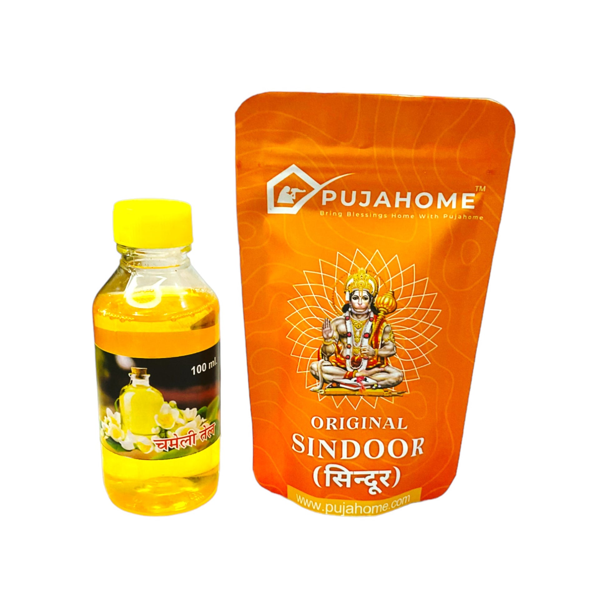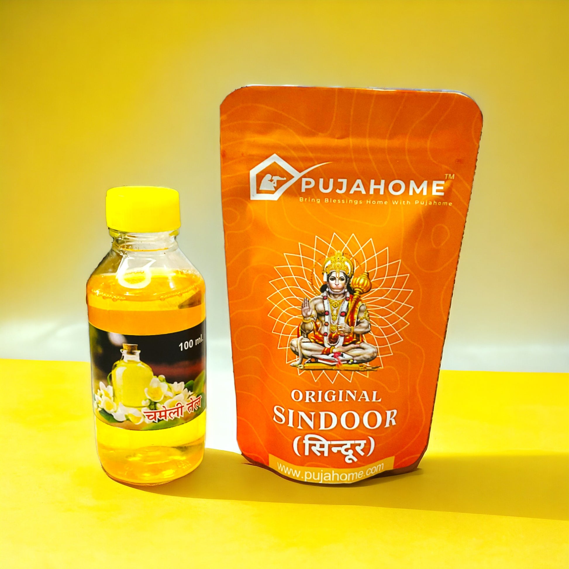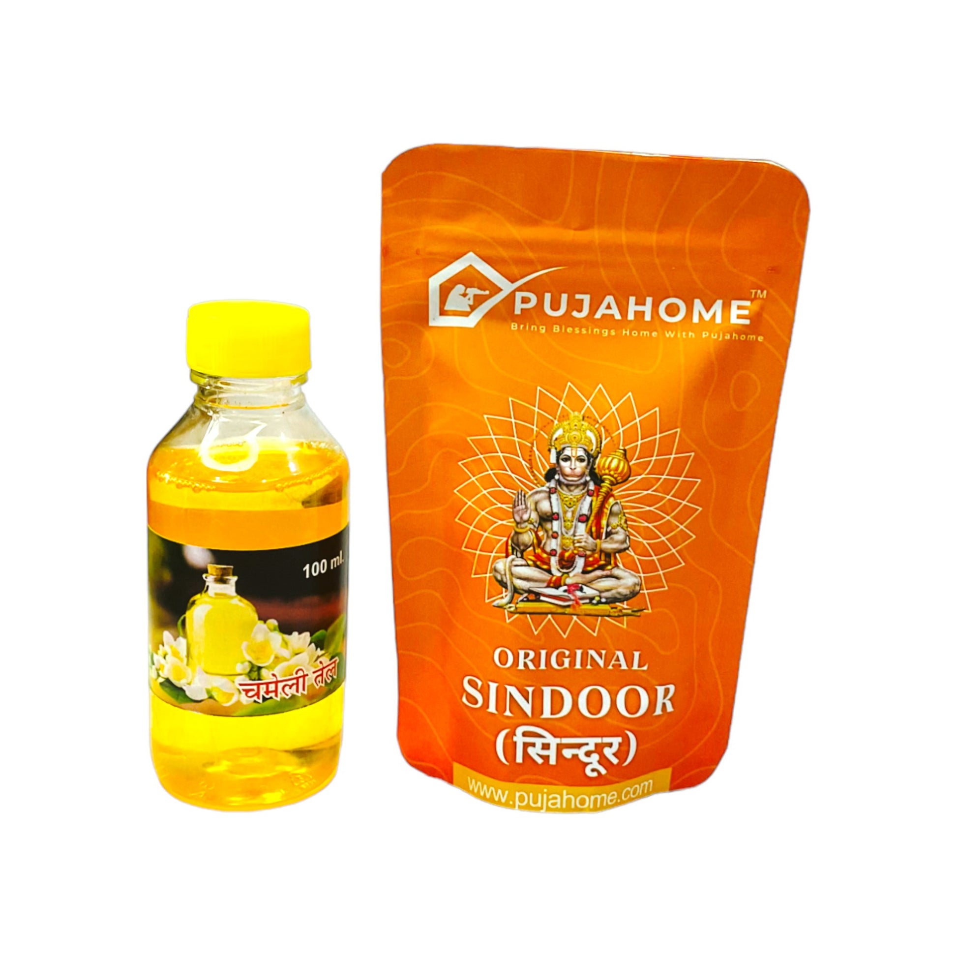 पूजा के लिए पूजाहोम हनुमानजी चोला मूल सिंदूर और चमेली/चमेली का तेल (100 मिली तेल + 100 ग्राम सिंदूर)