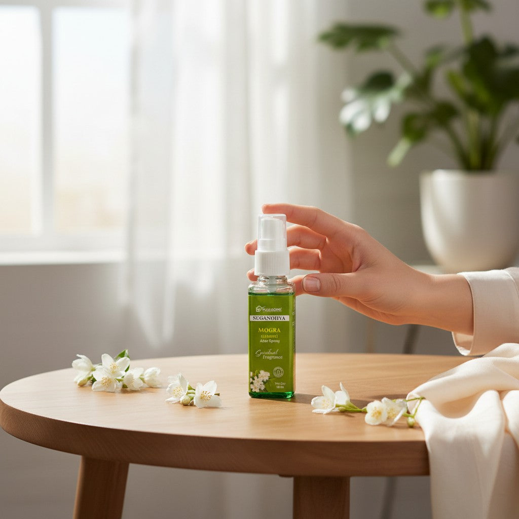 Enhance your daily prayers with the pure floral freshness of Pujahome Mogra Spray, thoughtfully crafted to bring serenity and devotion into your sacred moments.