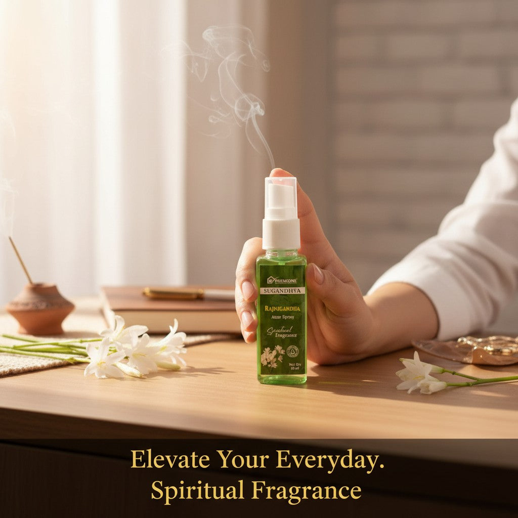 Enhance your spiritual moments with the pure floral fragrance of Pujahome Rajnigandha Spray, crafted to bring freshness, devotion, and serenity into your sacred space.
