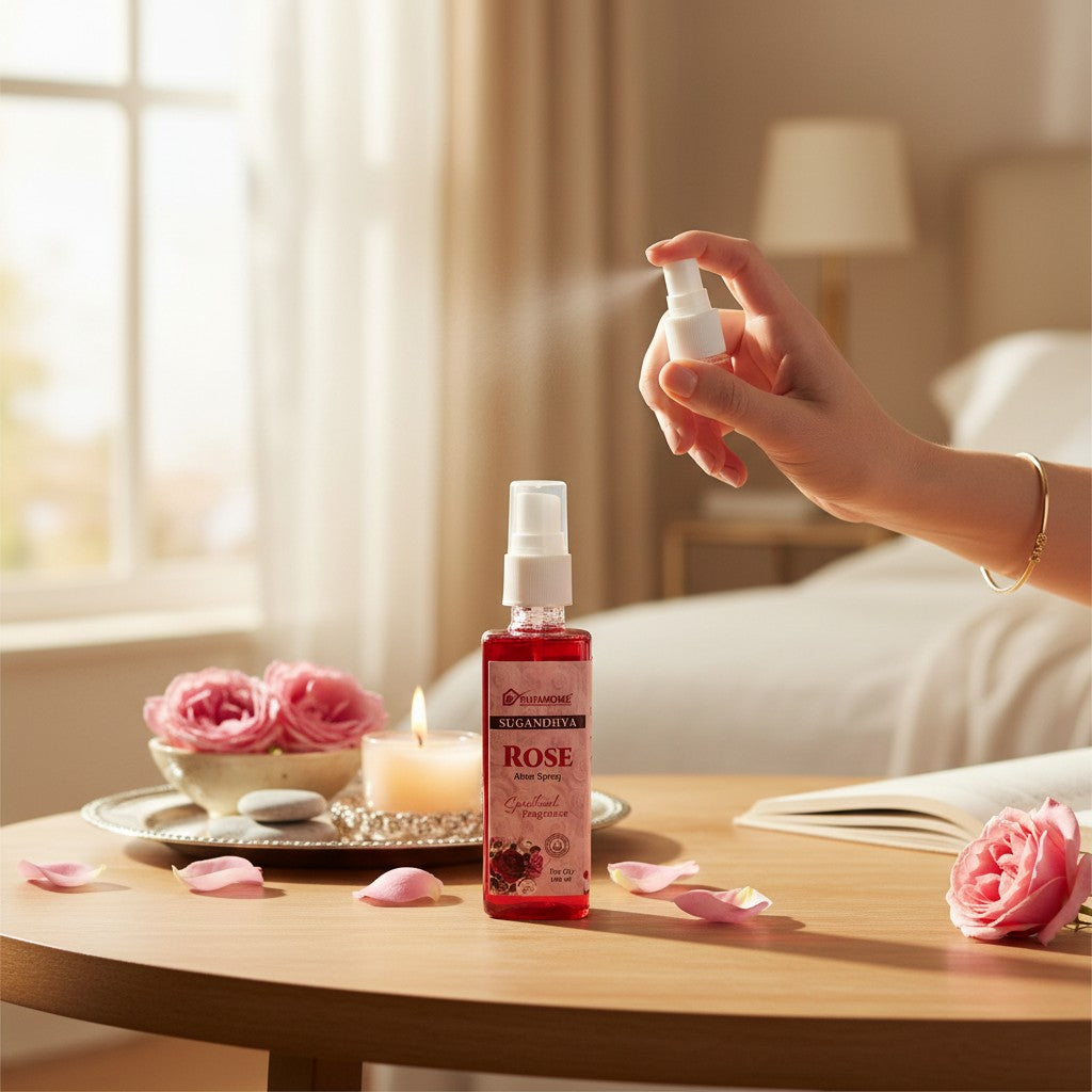 Bring serenity and devotion into your daily rituals with Pujahome Rose Spray—a gentle fragrance crafted for sacred moments.
