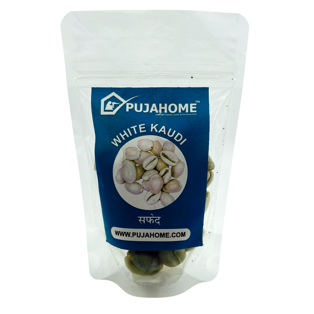 - पूजाहोम सफेद कोडी/लक्ष्मी कौड़ी, जिसे कौरी, कोवरी, कौड़ी, कौड़ी या कौड़ी के नाम से भी जाना जाता है, हिंदू अनुष्ठानों में पवित्रता और दिव्य सार का प्रतीक है।