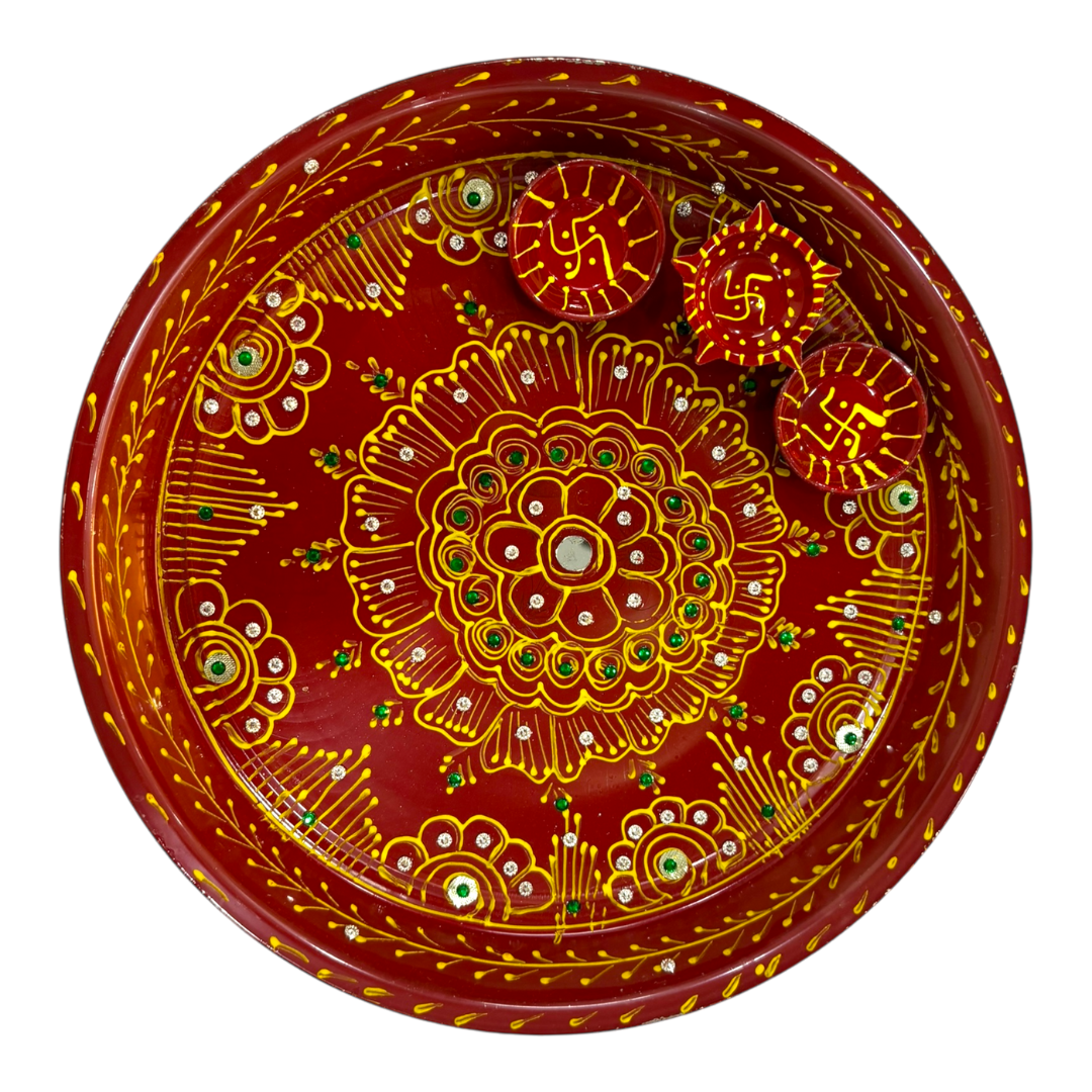 The Pujahome Handmade Karwa Chauth Pooja Thali Set is an exquisite representation of tradition, devotion, and craftsmanship. Crafted from high-quality stainless steel, this complete set is thoughtfully designed to make your Karwa Chauth celebrations more meaningful and special. Each item in the set has been hand-selected to enhance the sanctity of the puja, symbolizing the devotion and love between a wife and her husband.