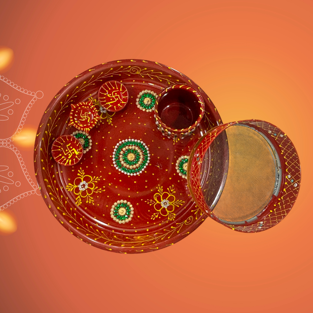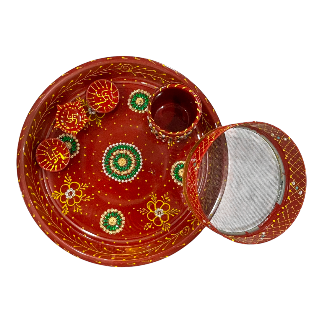 Whether you are observing the Karwa Chauth vrat for the first time or are continuing a longstanding tradition, this complete thali set makes the rituals simple and beautiful. It is also a thoughtful gift for married women or those about to embark on this sacred tradition. This thali set promises to make the festival of Karwa Chauth even more memorable, deepening the connection of love and devotion.