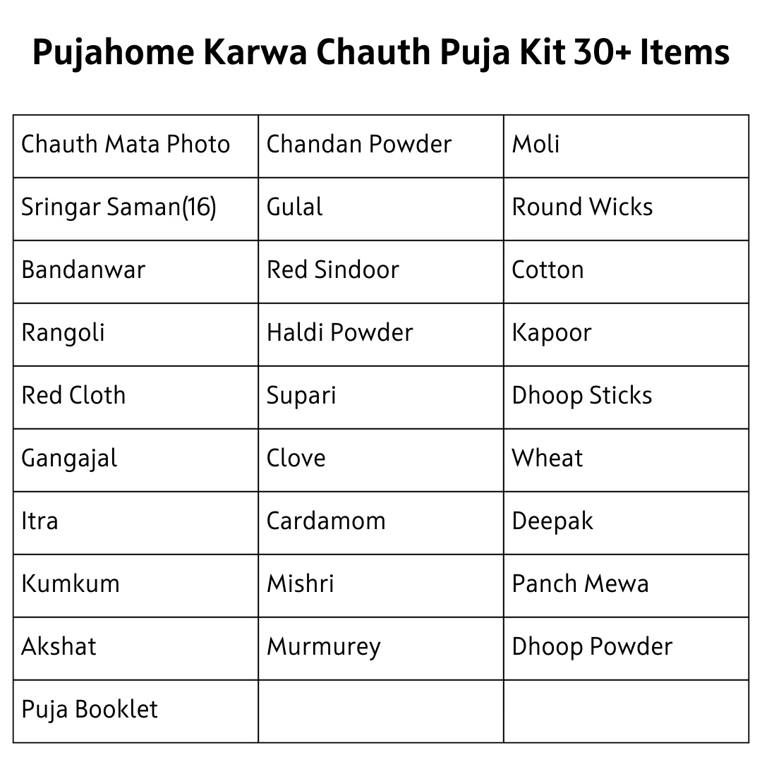 - Guidance Included: For those new to the tradition or needing a refresher, our Karwa Chauth Pooja Samagri Kit comes with a detailed guide, ensuring each step of the puja is clearly understood and followed.