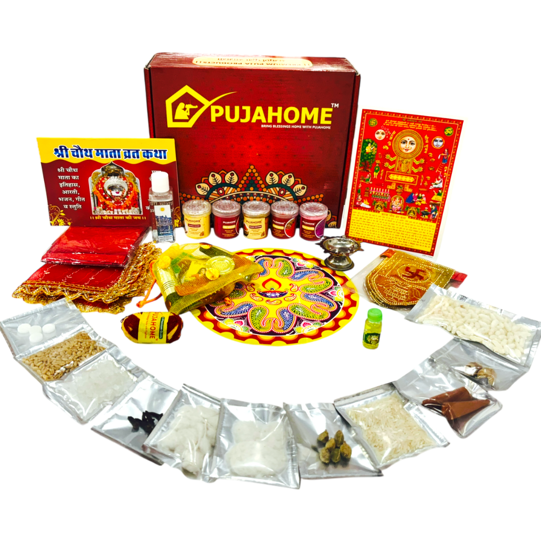 Delve into a realm of spiritual serenity and cultural essence with the Pujahome Karwa Chauth Puja Samagri Kit. Exclusively designed to serve the sacred needs of Karwa Chauth, one of the most revered festivals celebrated by married Hindu women, this comprehensive kit ensures that you are well-equipped to perform the rituals with utmost devotion.