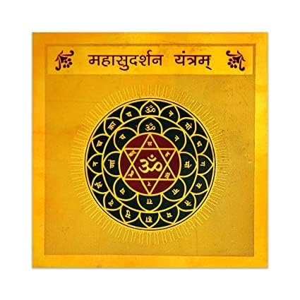 Pujahome Original Maha Sudarshan Yantra - 3.25x3.25 Inch, Gold Polished Spiritual and Vedic Yantra for Prosperity and Protection