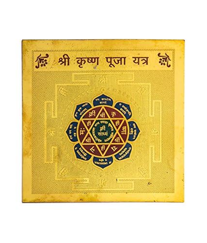 Pujahome Original Shri Krishna Yantra - 3.25x3.25 Inch, Gold Polished, Spiritual and Vastu