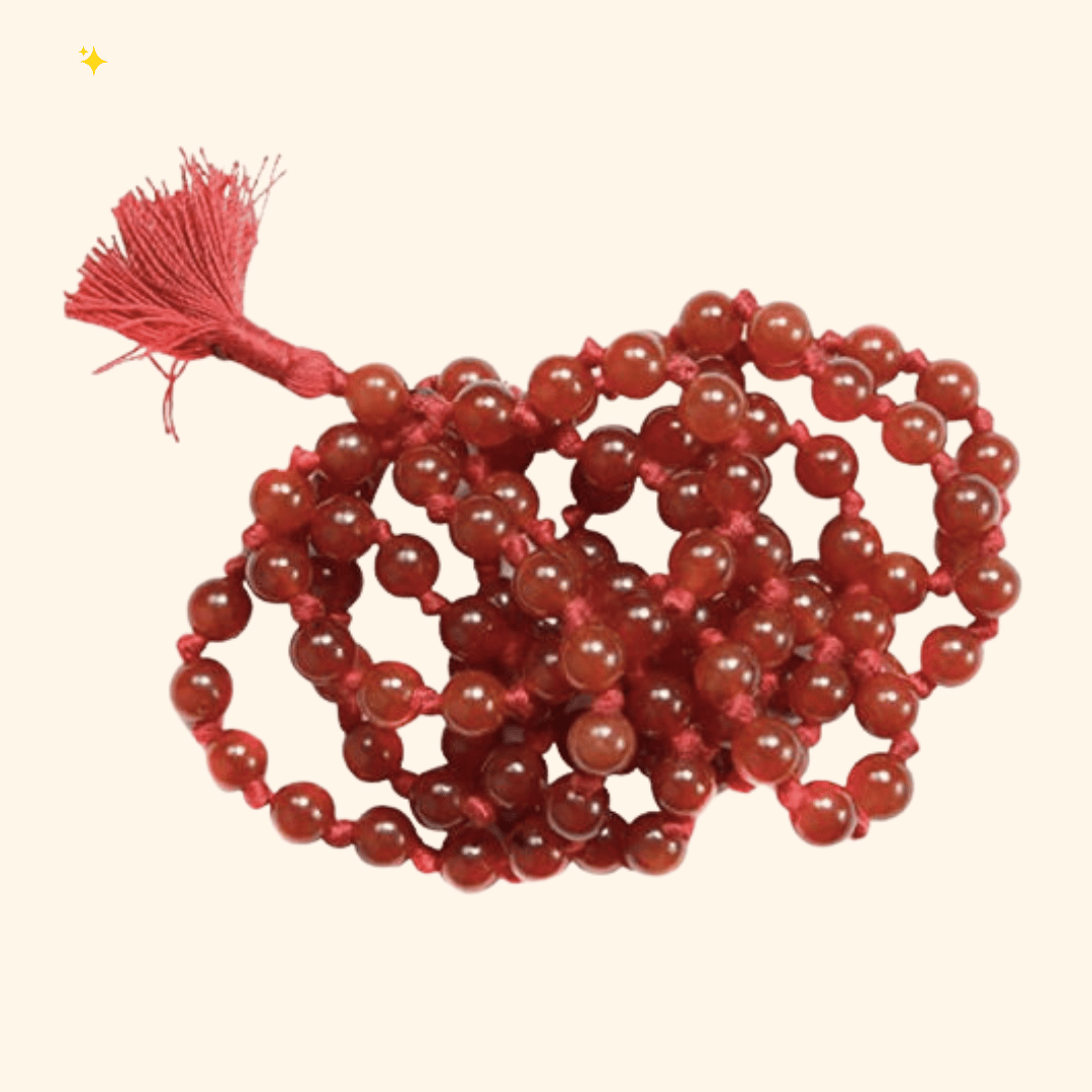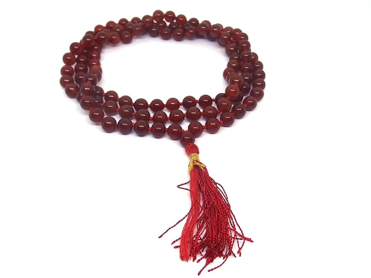 - Authentic Red Agate Beads: Each mala contains 108+1 high-quality, 7mm red agate beads, known for their grounding properties and beautiful, rich coloration.