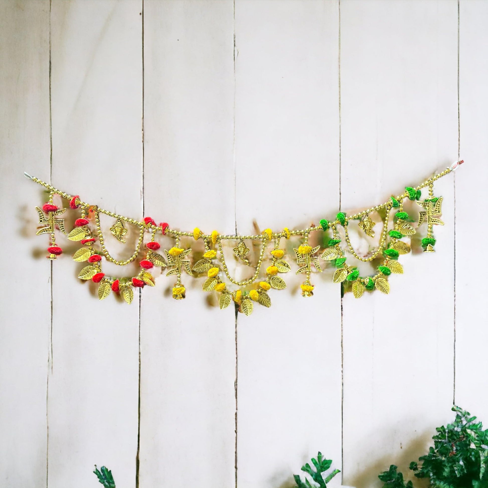 Pujahome Traditional Art Handmade Leaf Design Golden Colour Bandarwal Bandhawar Toran Door & Wall Hanging for Diwali Weeding Inauguration & Home Decoration