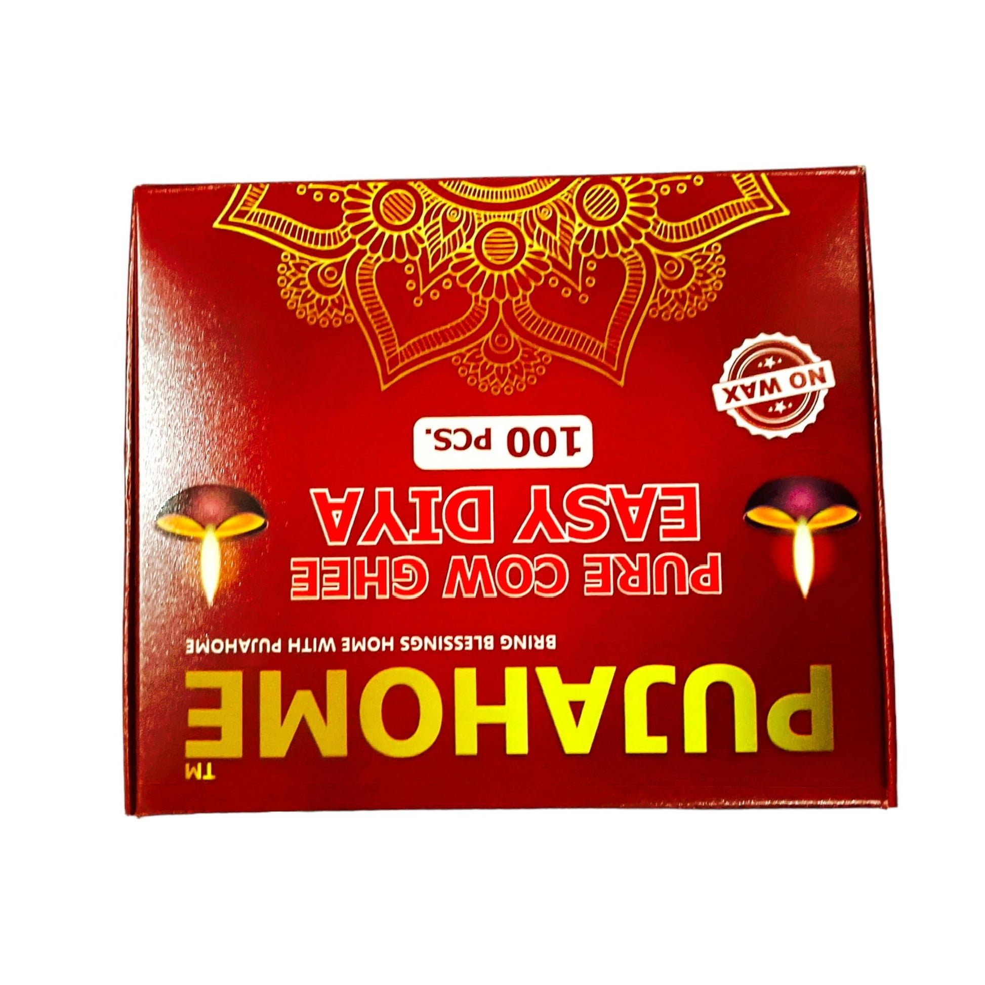 Pujahome Pure Cow Ghee Diya Wicks (100 Pieces) 30min Burning Time, Wax Free