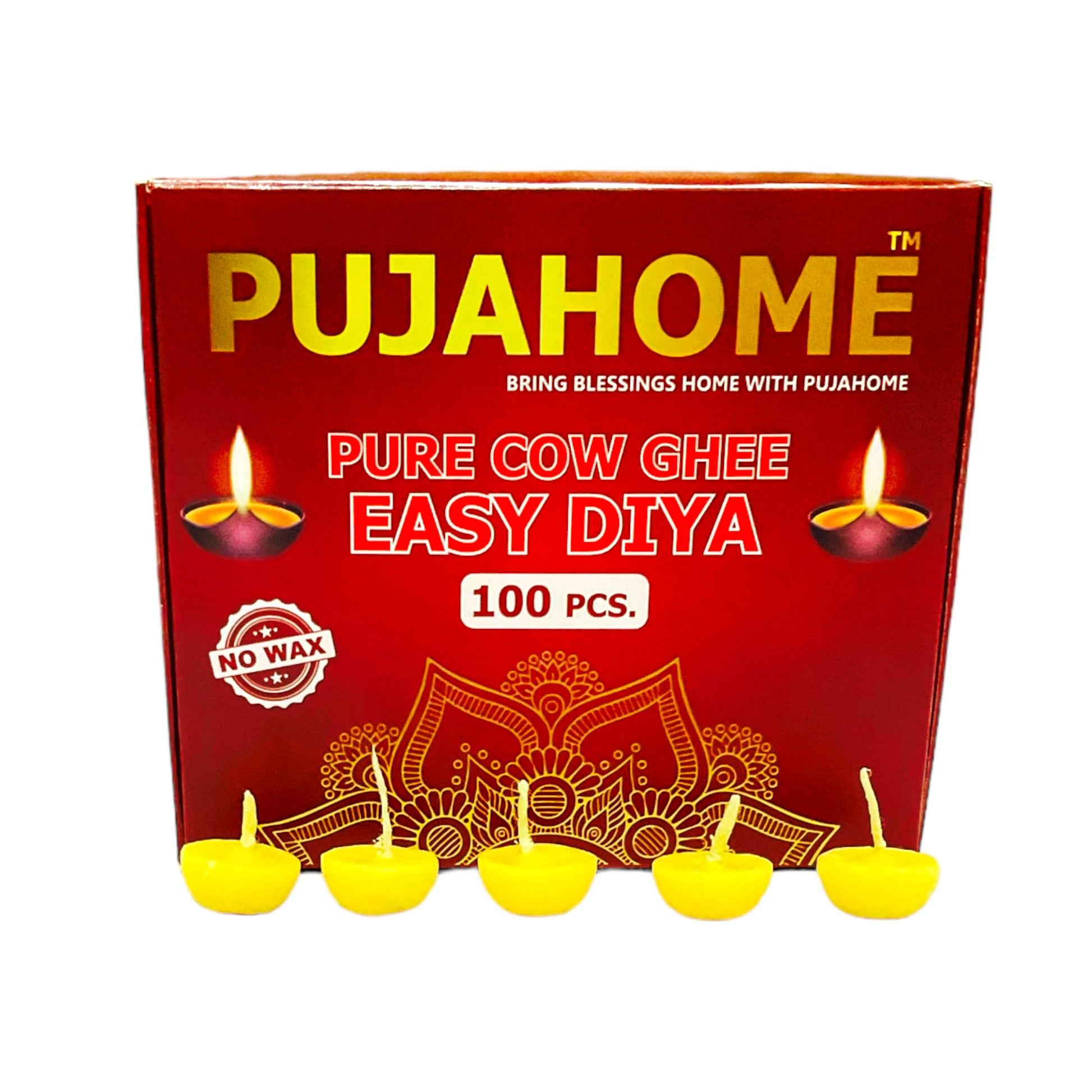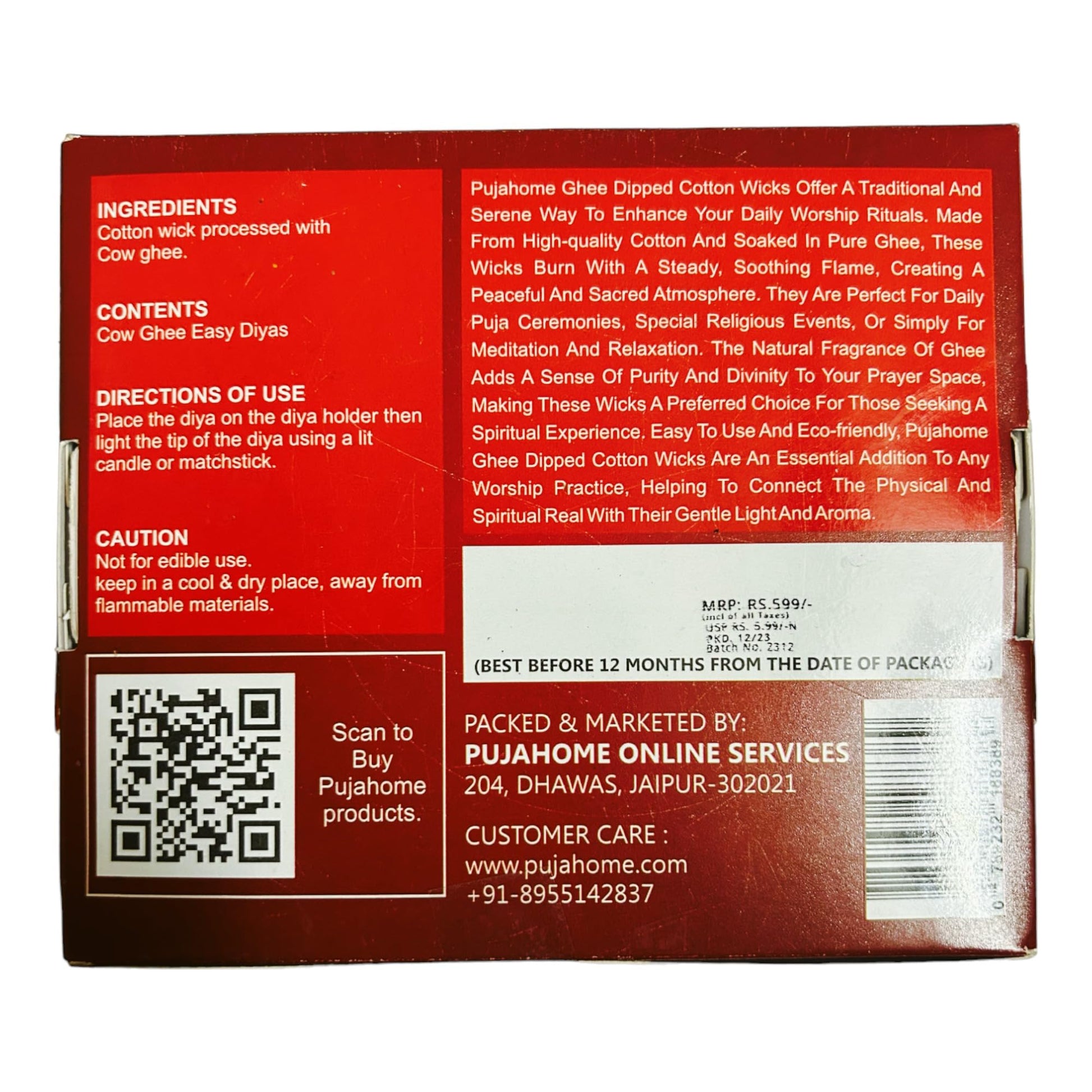 - 100% Pure Cow Ghee: Ethically sourced, these diya wicks uphold the purity and spiritual significance of cow ghee, enhancing your puja experience.