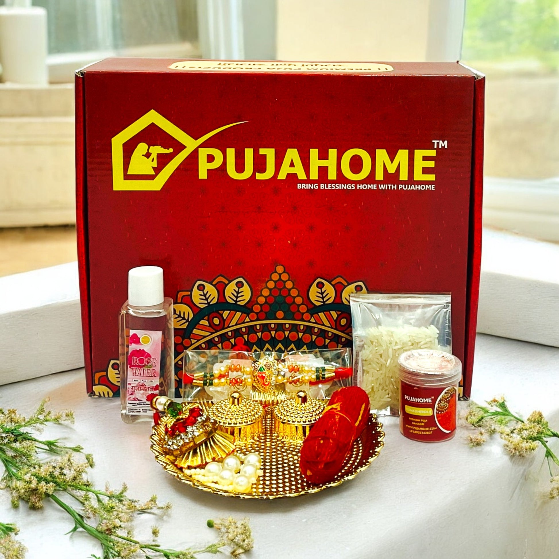 Pujahome Rakhi Puja Set | Puja Thali, Rakhi | Complete kit for celebrate raksha bandhan - Pack of 8 Items