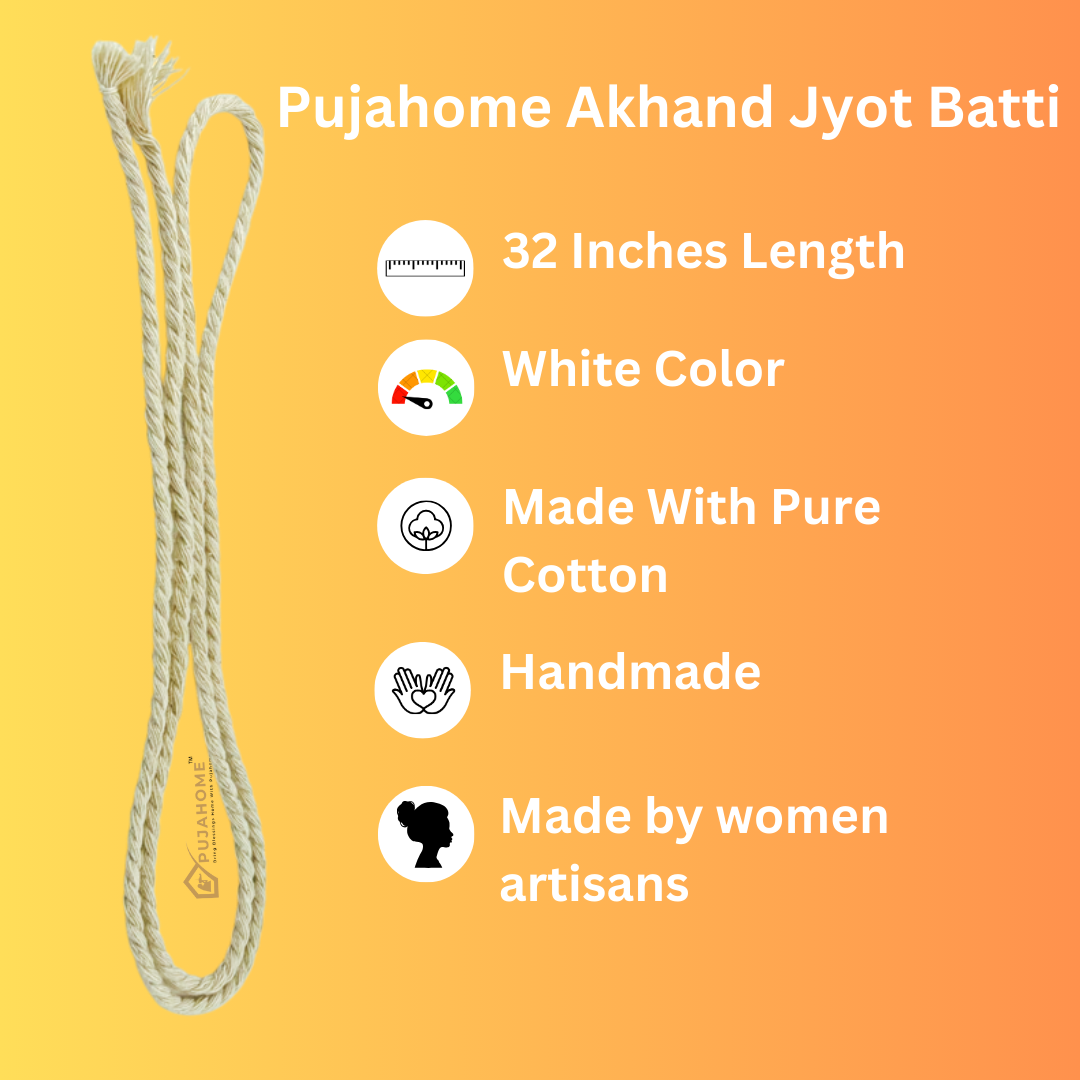 Pujahome Twisted Akhand Jyot Batti, Special Long Akhand Jyot Cotton Wicks(White)