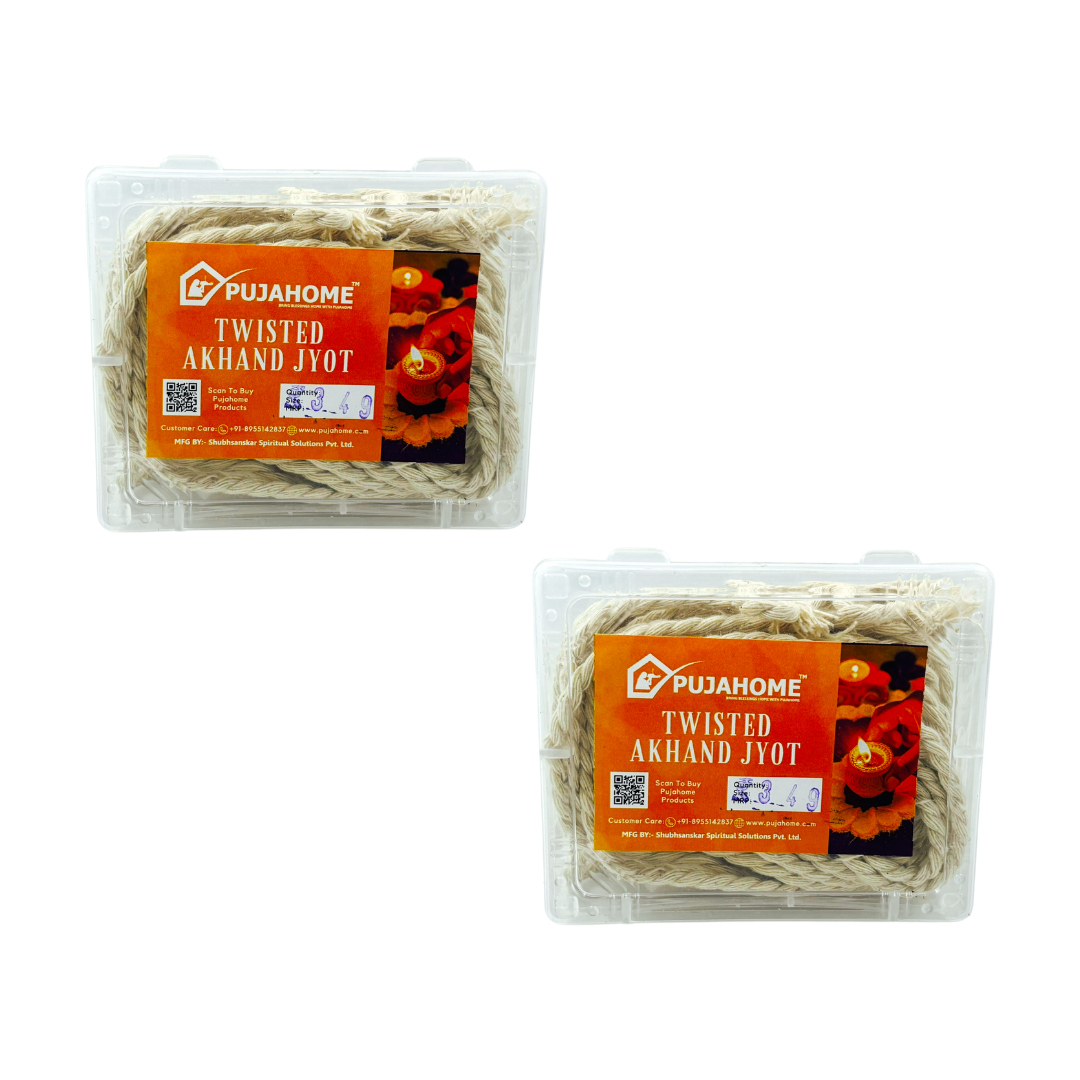 Experience the divine radiance and spiritual ambience with the Pujahome Twisted Akhand Jyot Batti, specially crafted for your sacred rituals and puja ceremonies. This pack of 12 or 24 white akhand jyot cotton wicks is meticulously designed to provide you with an uninterrupted flame, ensuring a serene atmosphere during your diya mandir pooja and oil lamp ceremonies.