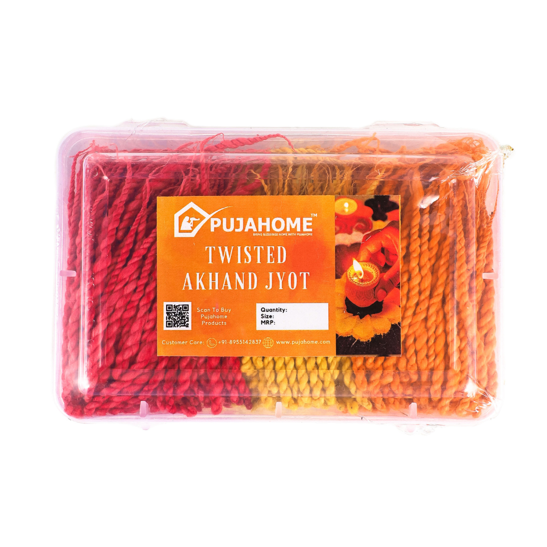 Elevate your daily pooja and meditation experience with the Pujahome Twisted Akhand Jyot Cotton Short Wick. This pack of over 600 multi-colored twisted cotton wicks is meticulously crafted to provide you with a serene ambiance and a long-lasting flame, perfect for your spiritual rituals.