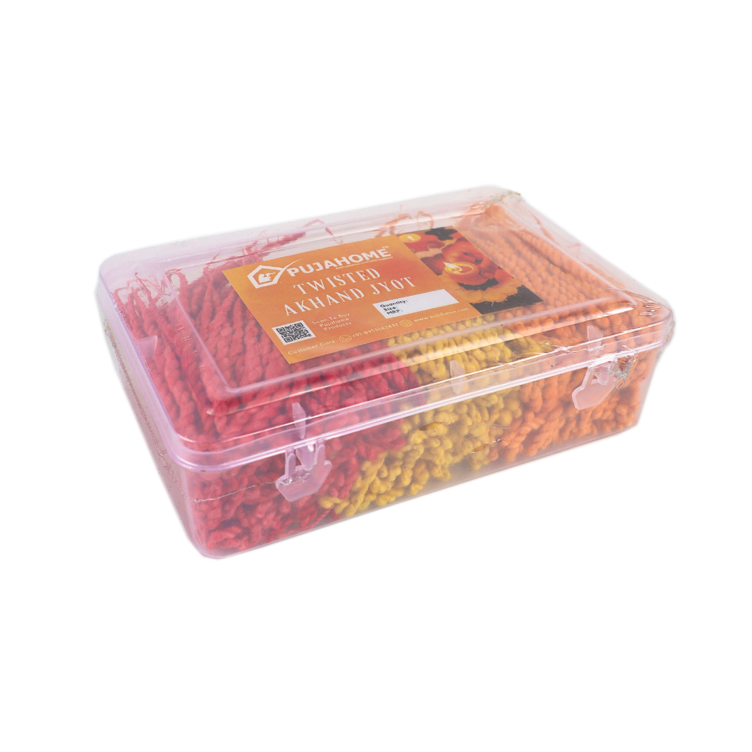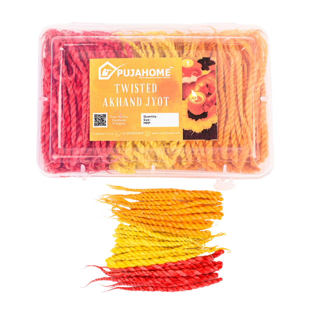Experience the tranquility and purity of these twisted akhand jyot cotton wicks as they infuse your space with divine energy. Create a serene ambiance in your puja room or meditation space with the vibrant colors and long-lasting flame of these twisted wicks.