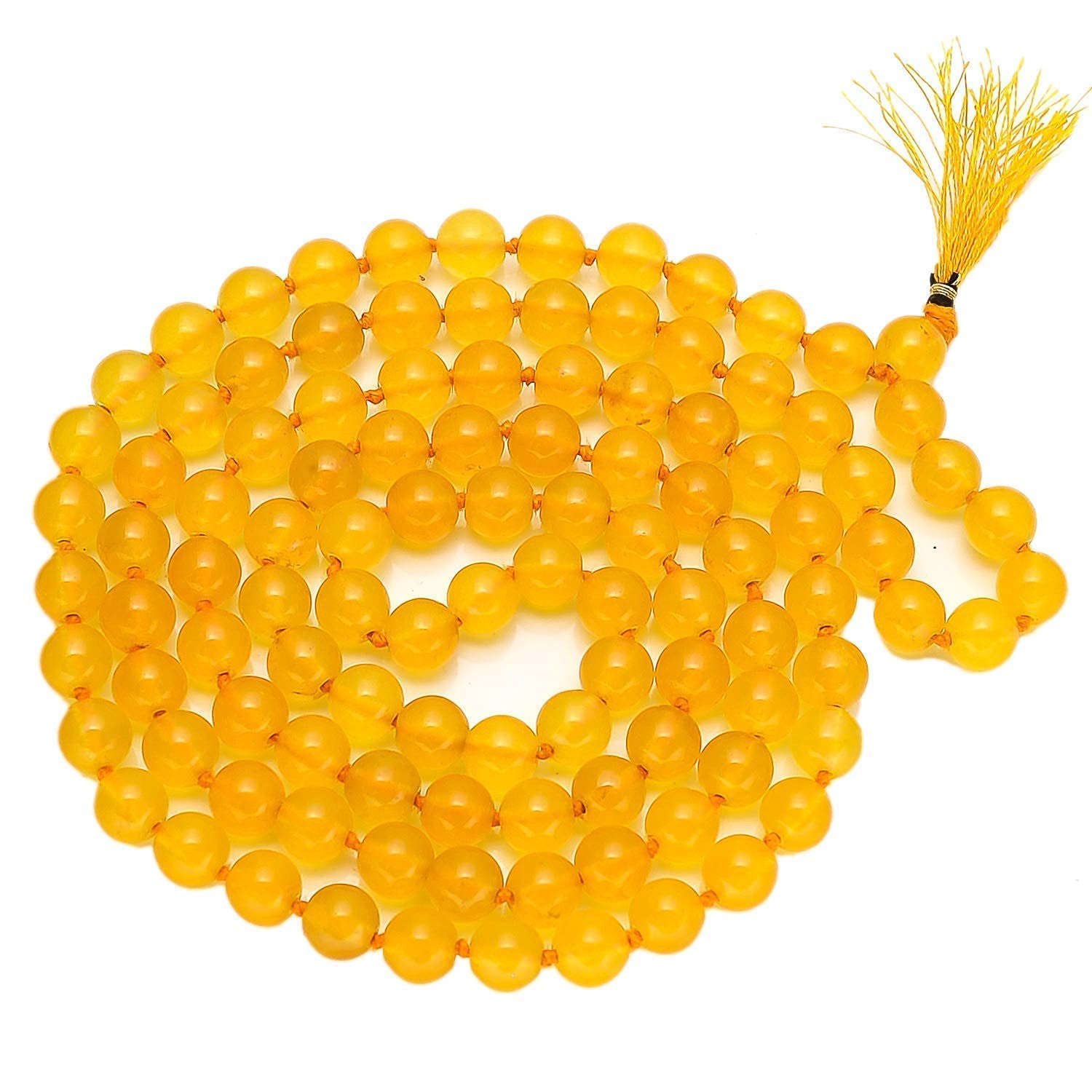 Pujahome Yellow Hakik Mala/Yellow Agate Mala (Size: 7mm, Beads: 108+1)